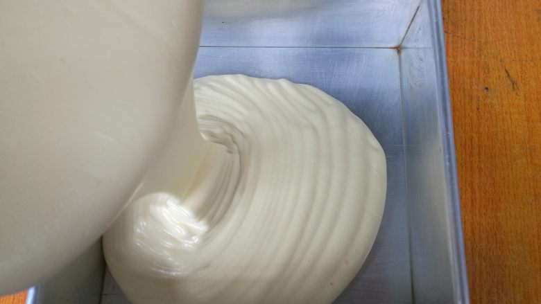 14. 倒回蛋白盆,继续翻拌均匀,图中是翻拌完成的样子。