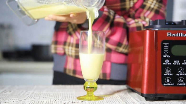 4. 将玉米粒、牛奶和水依次倒入惠尔宝调理杯中。