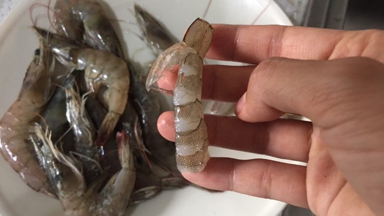 6. 虾皮扒下来,虾稍微冷冻一下比较好扒皮。