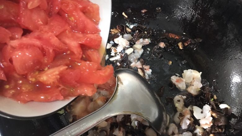 17. 发现西红柿皮脱离肉了,捞出沥干放入碗里。