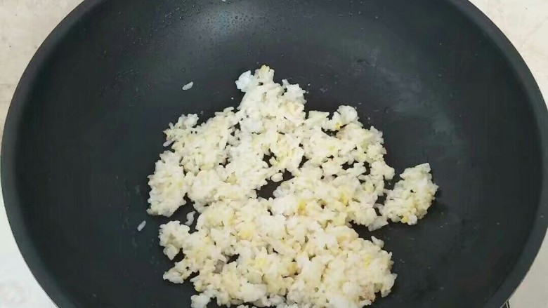 6. 炒锅放入花生油,放入米饭中火翻炒。