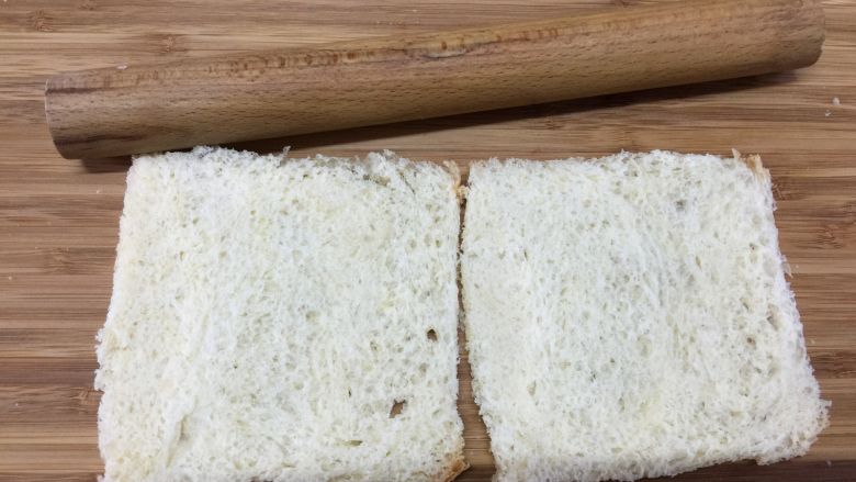 4. 用擀面杖擀压吐司片,使其紧实扁平