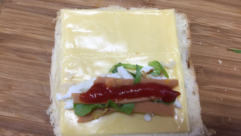 三明治有很多种做法,即使材料是一样,造型不同,仿佛也能给人不一样的味道 把三明治卷起来,用糖纸包裹,两面分别扎起来,看上去像一颗糖果 这样的包装,外观可爱,同时也方便携带和食用,是出游零食的一个新选择