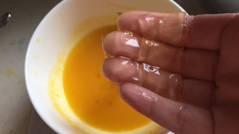 9. 取60芒果果泥加温后加入1片泡软的吉利丁片搅匀