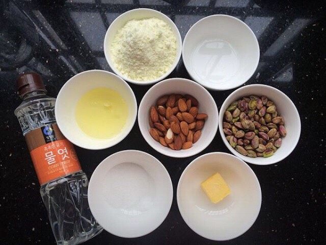 - 4.牛扎糖中的开心果跟杏仁,亲们都可以换上你们喜欢的口味哦。