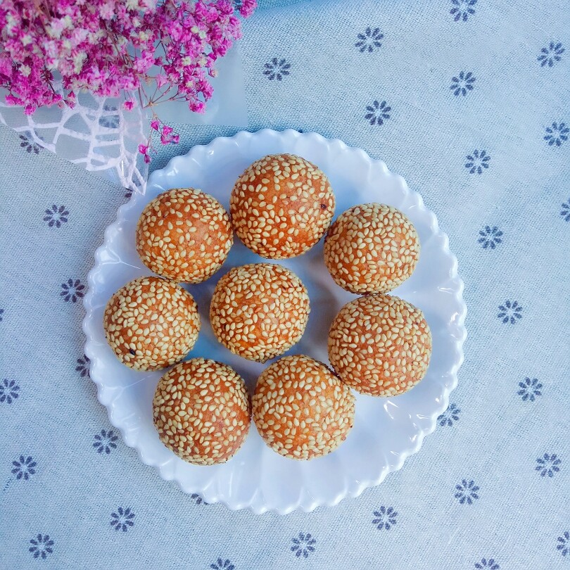 10. 全部裹上芝麻的南瓜球,放盘子备用
