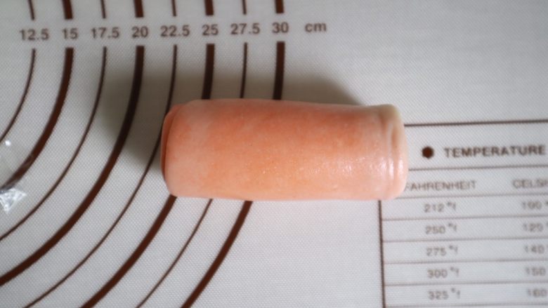 9. 其余颜色同样的擀长卷起,收口朝下,盖上保鲜膜松弛十分钟