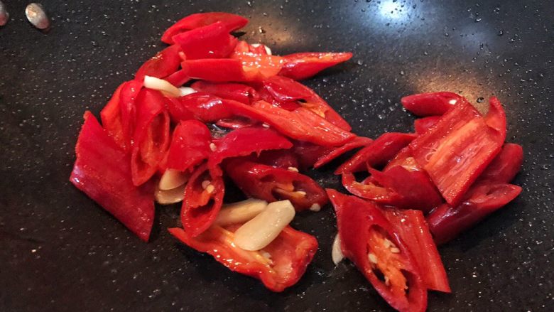 8. 放入辣椒翻炒