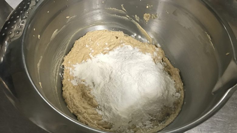 4. 低粉、泡打粉、盐混合后过筛 烤箱预热190度
