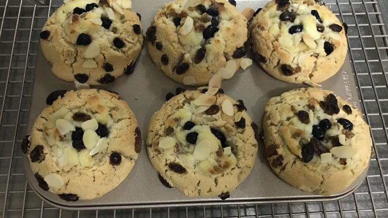 最近做麦芬做得上瘾的不行,昨天晚上做了这款朗姆酒葡萄干麦芬,书上说用的是市售的朗姆酒葡萄干,我没有见到。就自己用朗姆酒泡的果园老农的小粒的葡萄干,感觉味道也很棒。麦芬适合放一夜再吃,让它有一个回油的过程,表面也会变得更滋润更软糯味道也会更浓厚一些