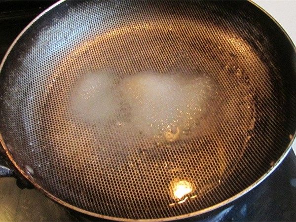 4. 直至油几乎无泡, 且颜色变为浅金黄色, 加入少量的酒;