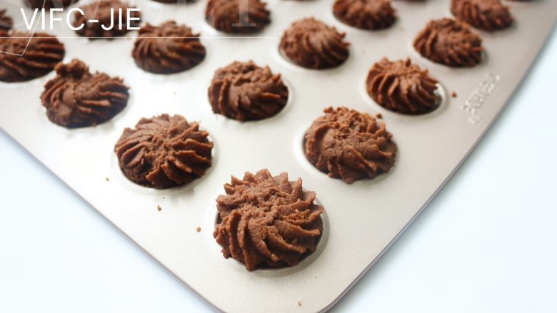 9. 烤箱提前预热上下火180度10分钟,再放入曲奇,中层180度25分钟