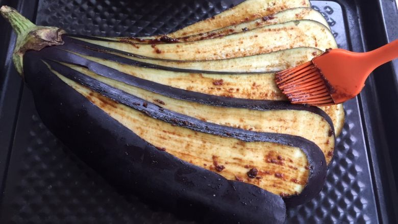 6. 用硅胶刷把豆瓣酱刷在每一片朝上的一面。