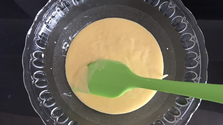 9. 制作好的蛋黄糊过筛,放一旁备用。