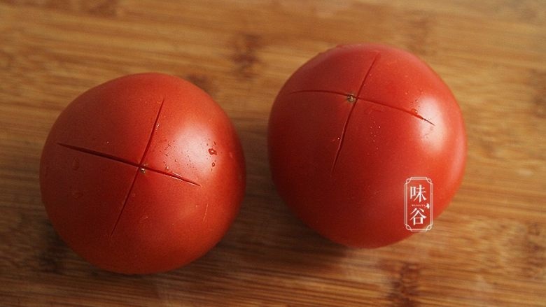 2. 先把番茄底部划十字;