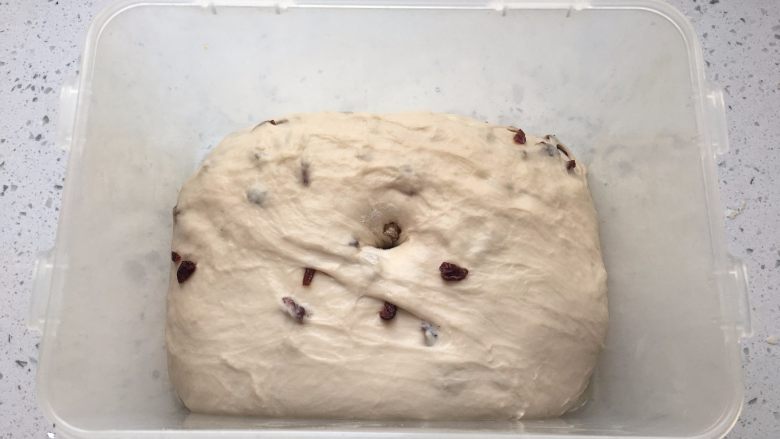 7. 发酵到两倍大,手指沾粉戳洞不回缩不塌陷