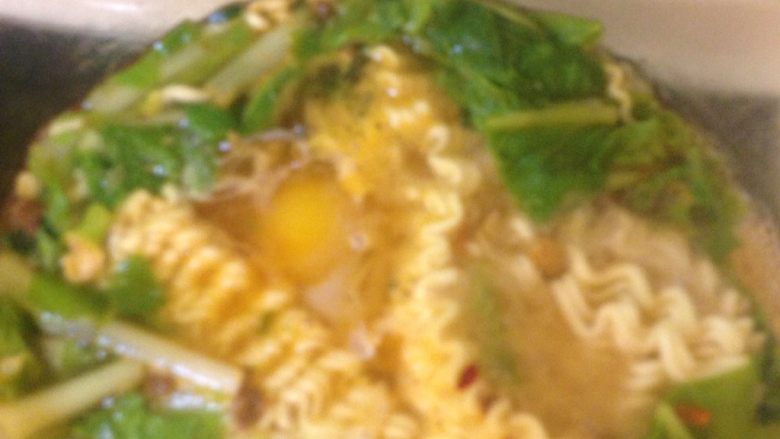 4. 麵上面打蛋,可以避免黏鍋底。想吃完整蛋要小火煮,不喜歡蛋黃直接筷子攪拌