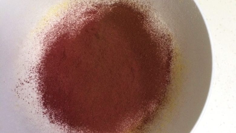 7. 筛入可可粉和红曲粉。