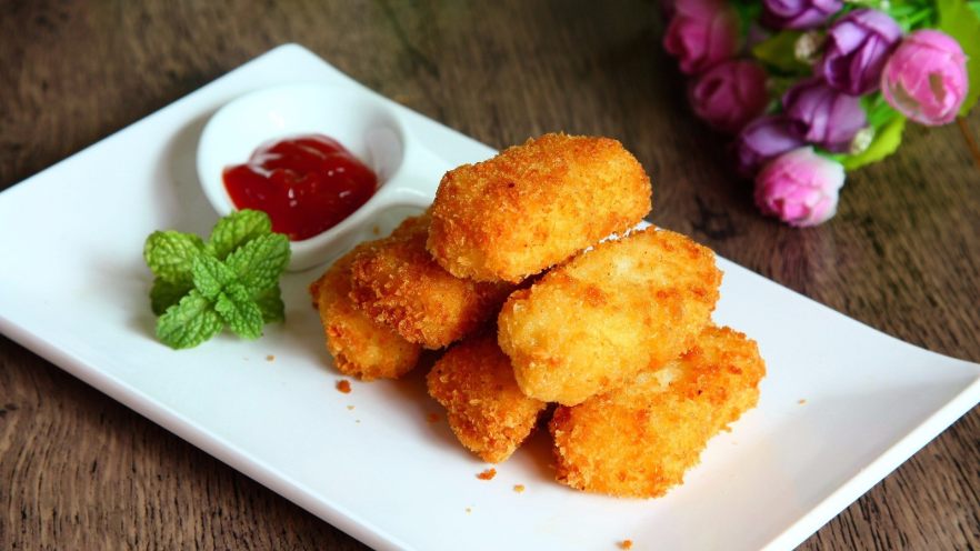 炸鲜奶外金黄、内洁白,外酥脆、内软嫩。酥脆的外皮包裹着浓郁的鲜奶,炸鲜奶并不是真的将牛奶下锅炸,而是用鲜奶做成奶糕裹在糊里炸制而成。