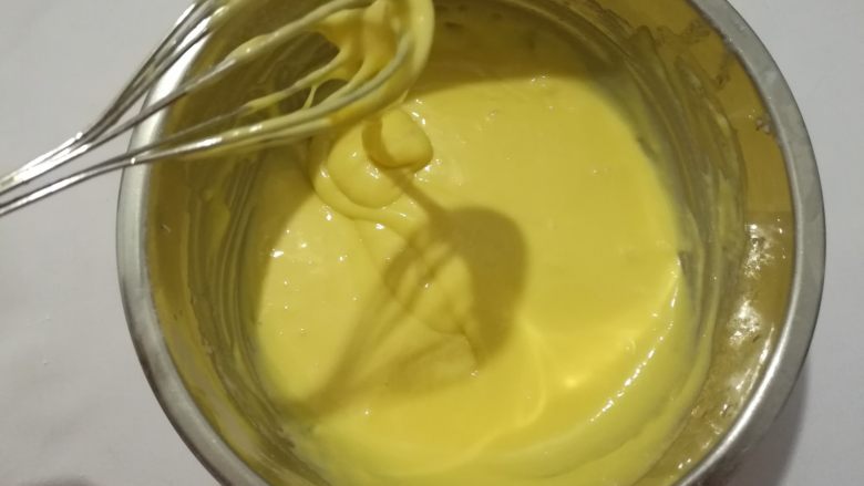 14. 图中是蛋糊混合好的状态,有些浓稠,太稀或者有泡泡就是消泡了。