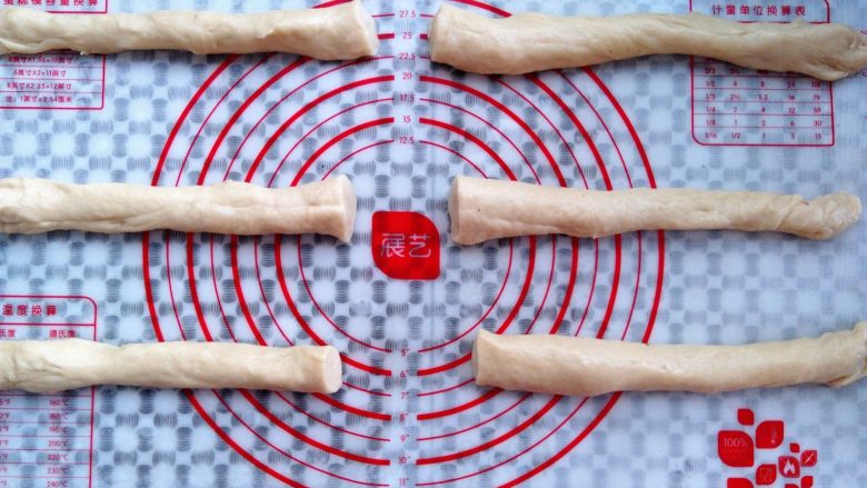 6. 面团慢慢的搓成长条,如果搓的过程中回缩厉害,可以继续松弛面团,交替搓其他的面团