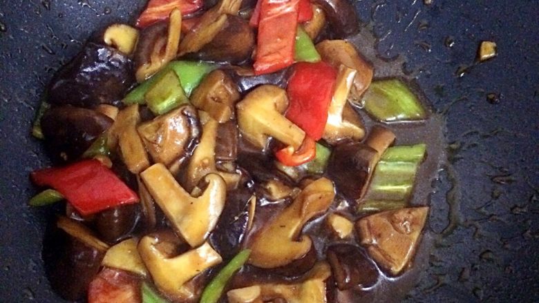9. 倒入淀粉汁勾芡,加少许盐,收汁