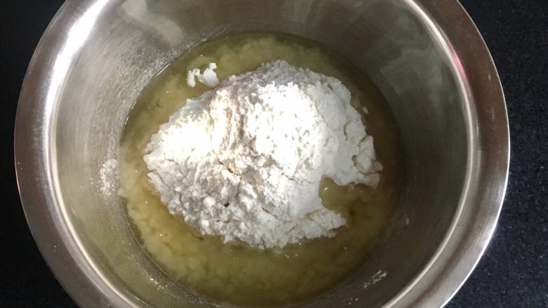 3. 油酥材料放一起,拌匀保鲜膜盖好备用。