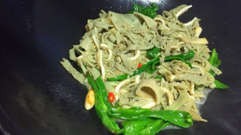 5. 翻炒过后即可出锅,因为牛百叶已经用高压锅炖过,所以已经是熟的,所以不需要翻炒太久,只要把青椒炒熟即可