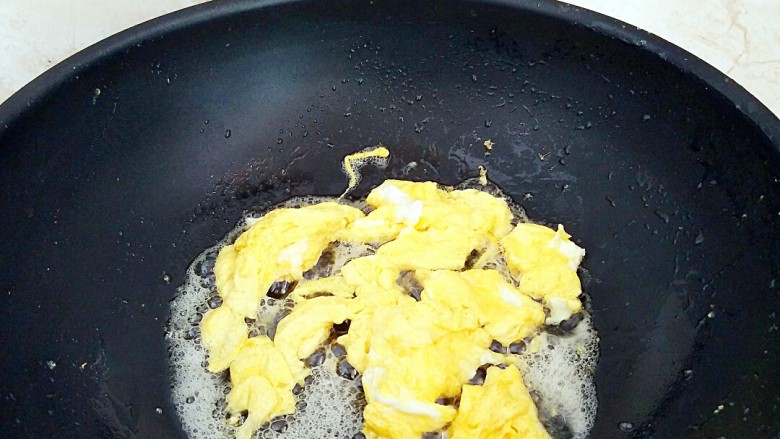 7. 炒锅放入1勺油,倒入蛋液炒散备用。