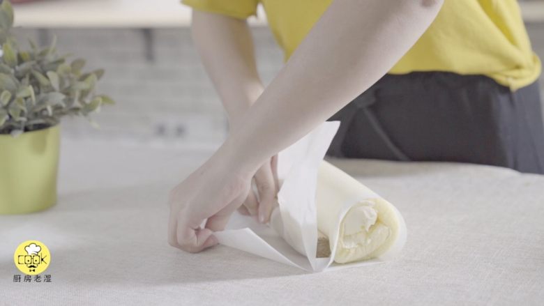 21. 借助擀面杖卷起,入冰箱冷藏半小时定型