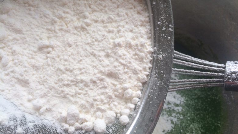 4. 筛入低筋面粉轻轻搅拌混合均匀。