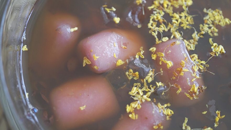 6. 锅中烧热水煮粉芋圆,煮到芋圆外层有透亮的感觉。