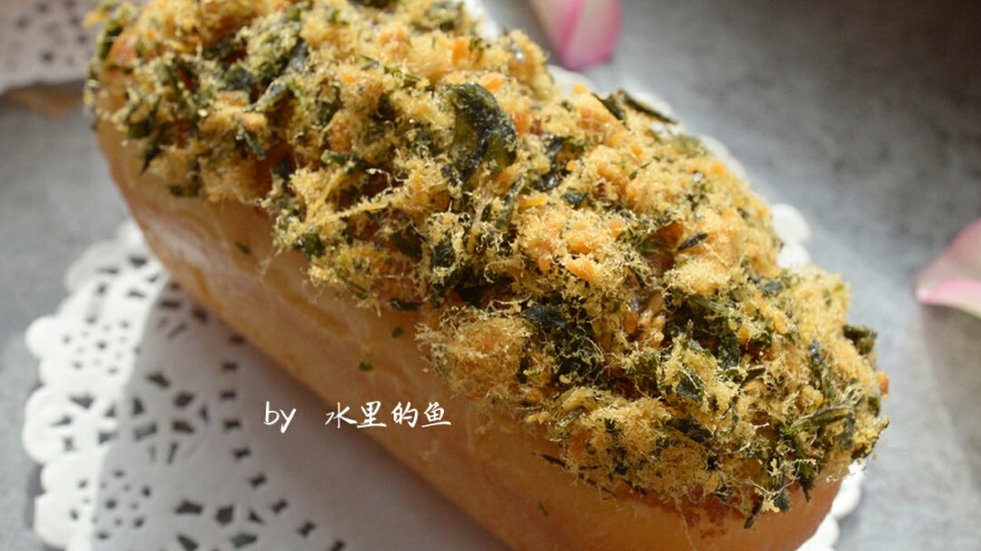 13. 出炉趁热撒上柴鱼片或海苔肉松,冷了容易粘不住,不过表面也可以再刷点沙拉酱帮助粘的更多