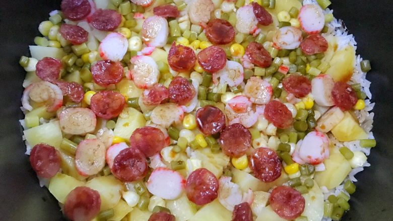 - 焖饭的材料是不固定了 但是腊肠我是特别推荐的因为他出油 很香 之前还回家腊肉 冰箱翻遍了才发现吃完了 然后土豆豆子豆角也都很好吃 其他的各种蔬菜都可以加 搭配出来的颜色都很好看 然后就是可以把材料都切的小小的 这样一口有各种食材口感特别丰富!超级推荐