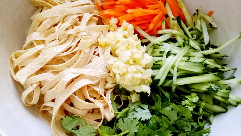 11. 把主角豆油皮和辅料统统 拌 拌 拌 搅拌均匀入味即可。