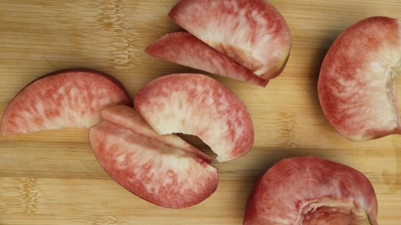 3. 水蜜桃和绿桃切块,柠檬切片,备用