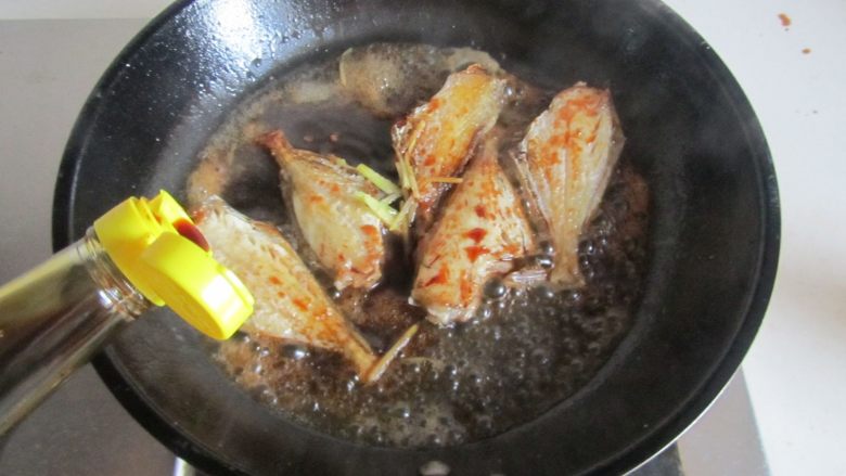 - 1. 煎鱼时要先将表面的水分吸干, 这样避免煎鱼时油溅出来; 2. 鱼双面煎好后,倒入腌制的料汁(姜丝和料酒),少许生抽和盐,调味慢慢收汁入味; 3. 汁快收完时放入辣椒粉,翻炒让它入辣味。