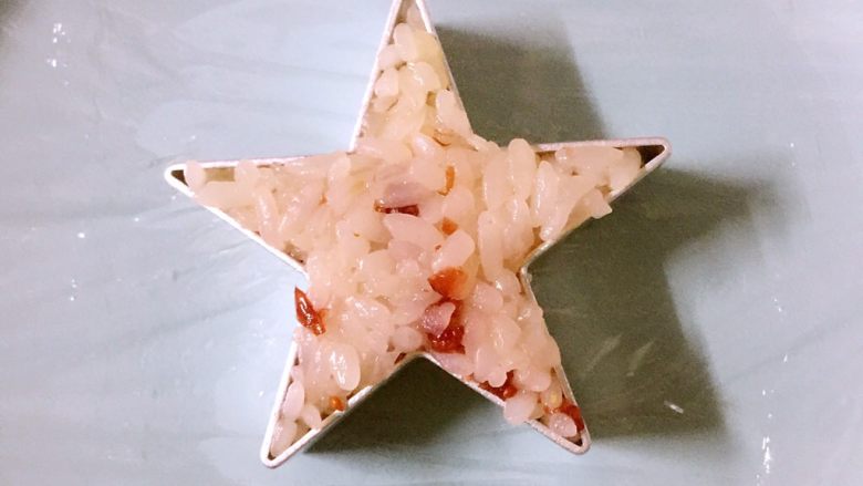 20. 移入需要摆盘的盘子内 用平勺,轻轻将糯米饭顶出模具 没有平勺就用黄油刀之类