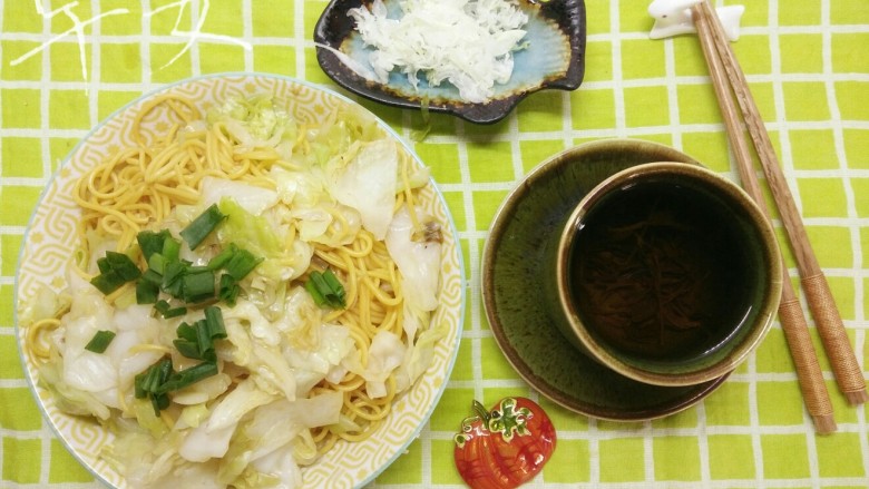 14. 超市买的南瓜面可以放好多天,清炒包菜,配一杯茶。一早上都精神极了。