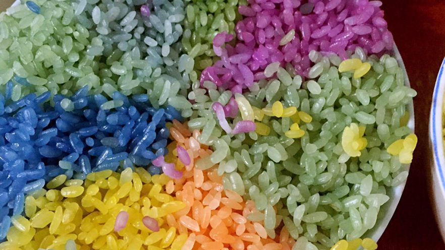 2. 五种植物煮水,分别煮出……橘,蓝,绿,黄,紫,注:绿色是蓝色和黄色对出来滴~