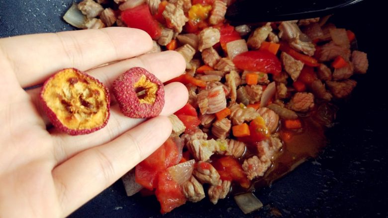 - 3. 加入山楂干和苹果丁,有酸甜的水果香气,营养更丰富,能使牛肉更容易炖烂,但是又比电压力锅做的有嚼头。