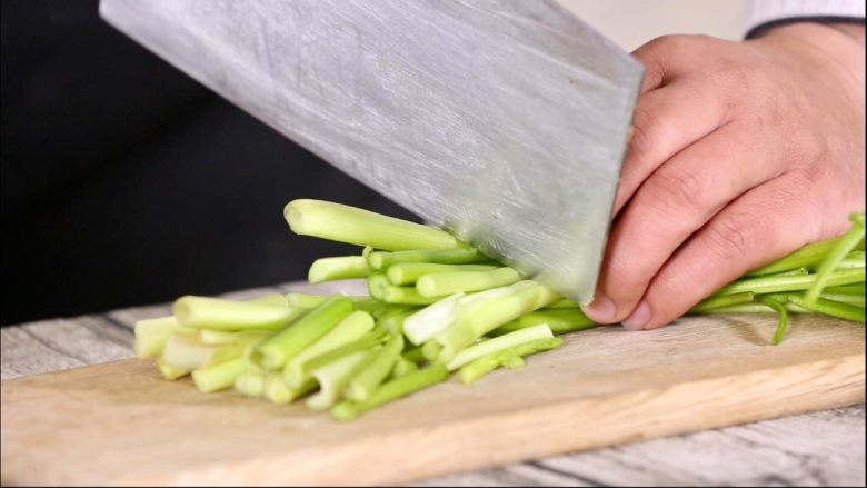 3. 首先要将水芹改刀成段 大小要适中增加食欲