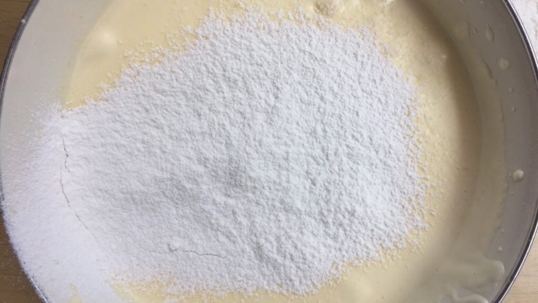 6. 分三次筛入面粉翻拌均匀无颗粒