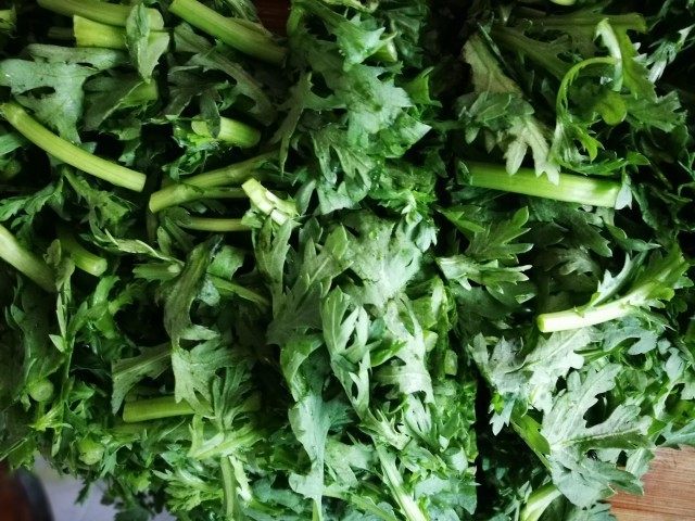 - 如果茼蒿杆比较老可以去掉,或者先把杆放到锅里炒一会后再放茼蒿叶