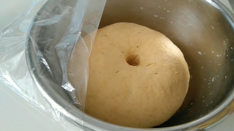 4. 发酵到,手指戳一个洞,不变形,既发酵好。