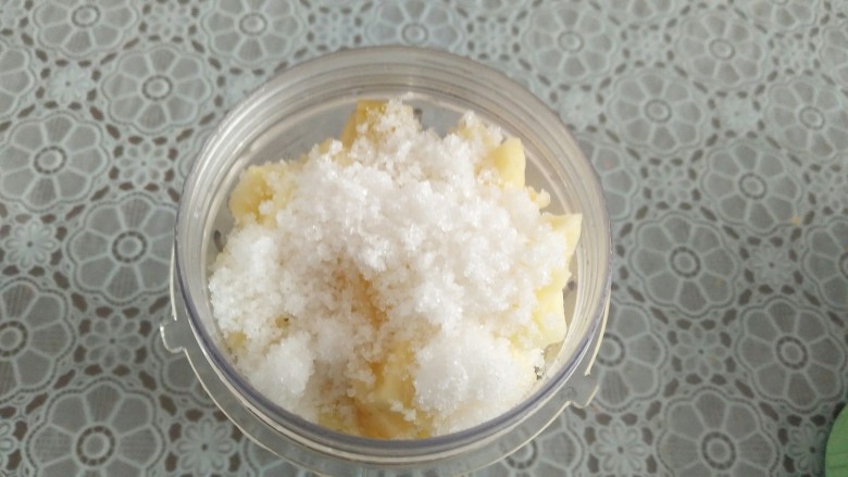 - 1.苹果削皮切块,加糖、水、莓干打泥