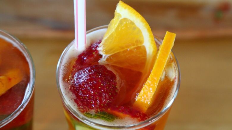 英国的夏天,除了带着草莓的芳香和奶油的甜美外,还应该有 Pimm's鸡尾酒的清凉冰爽。有人说这是“纯粹的英式享受”。 特别是一年一度的英国溫布頓网球賽更是少不了Pimm’s! Pimm's 是什么?实际上是一款水果鸡尾酒,它是用Pimm's NO.1酒加入柠檬汽水和蔬果(黄瓜、草莓、橙子、柠檬、薄荷)调制而成。因此它也被叫Pimm’s No. 1 Cup(中文叫:皮姆一号酒)。 Pimm's不仅是视觉的盛宴,口感上也特别的清凉美味,清新甜美爽到心,最最夏日饮品! 材料(1杯):Pimm’s No. 1(皮姆一号)30毫升、柠檬汽水(lemonade)90毫升、黃瓜6片、橙子2片、草莓4个、柠檬1片、薄荷嫩尖1枝、冰块4块