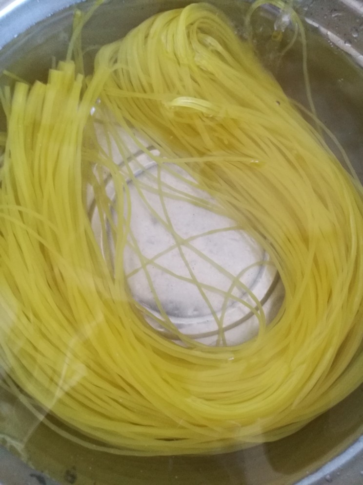 1. 用凉水把冷面泡20分钟。