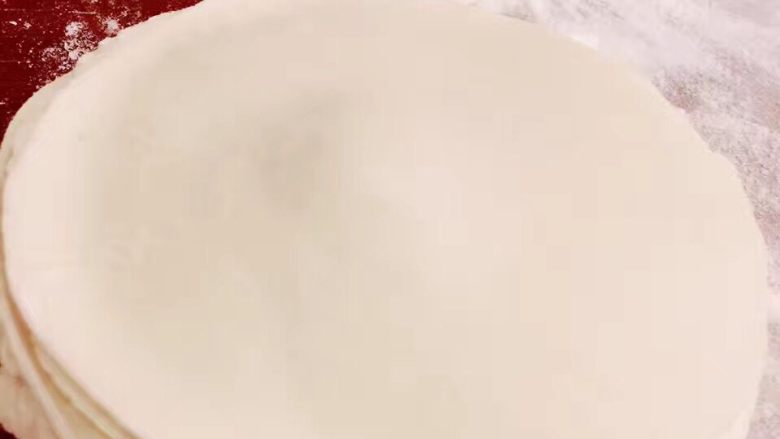 3. 和好的面团擀皮(和面:面粉加适量温水搅拌雪花状揉成团静置半小时以上)