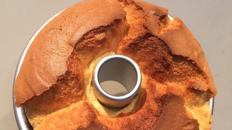 21. 出炉马上在案板上摔几下排出热气,倒扣至凉透在脱模